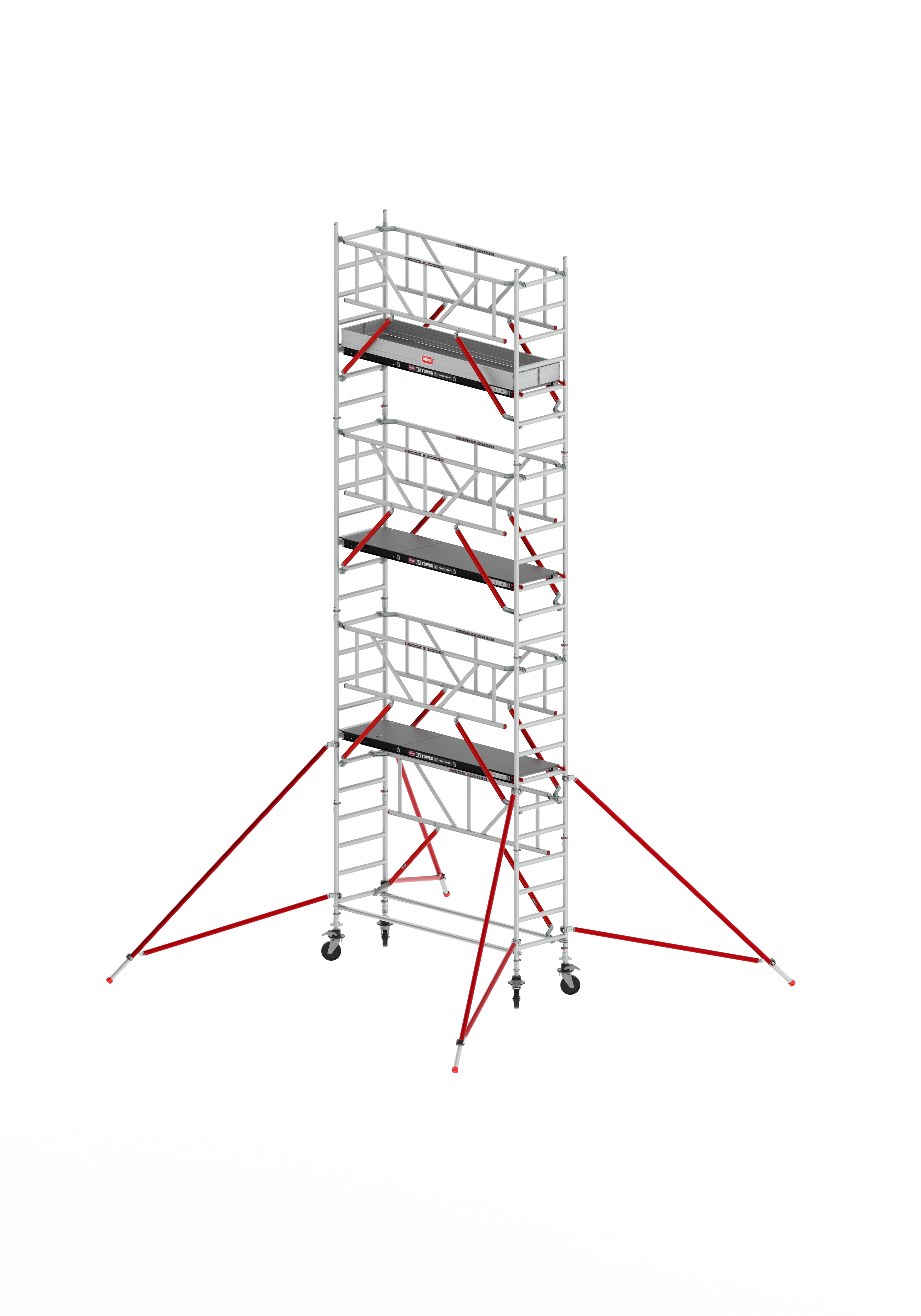 - 6x Bastidor RS TOWER 5 75-28-7 - 2x Bastidor RS TOWER 5 75-28-4 - 4x Brazo ajustable + Rueda RS TOWER 5 Ø 200 mm RS TOWER 5 - 3x Plataforma de madera 245 con trampilla - 7x Barandilla Safe-Quick® 245 RS TOWER 5 - 2x Tirante Horizontal RS TOWER 5 245-6 - 4x Estabilizador Triangular Easy-Lock® universal Rojo - 1x Rodapié Aluminio RS TOWER 5 75 x 245