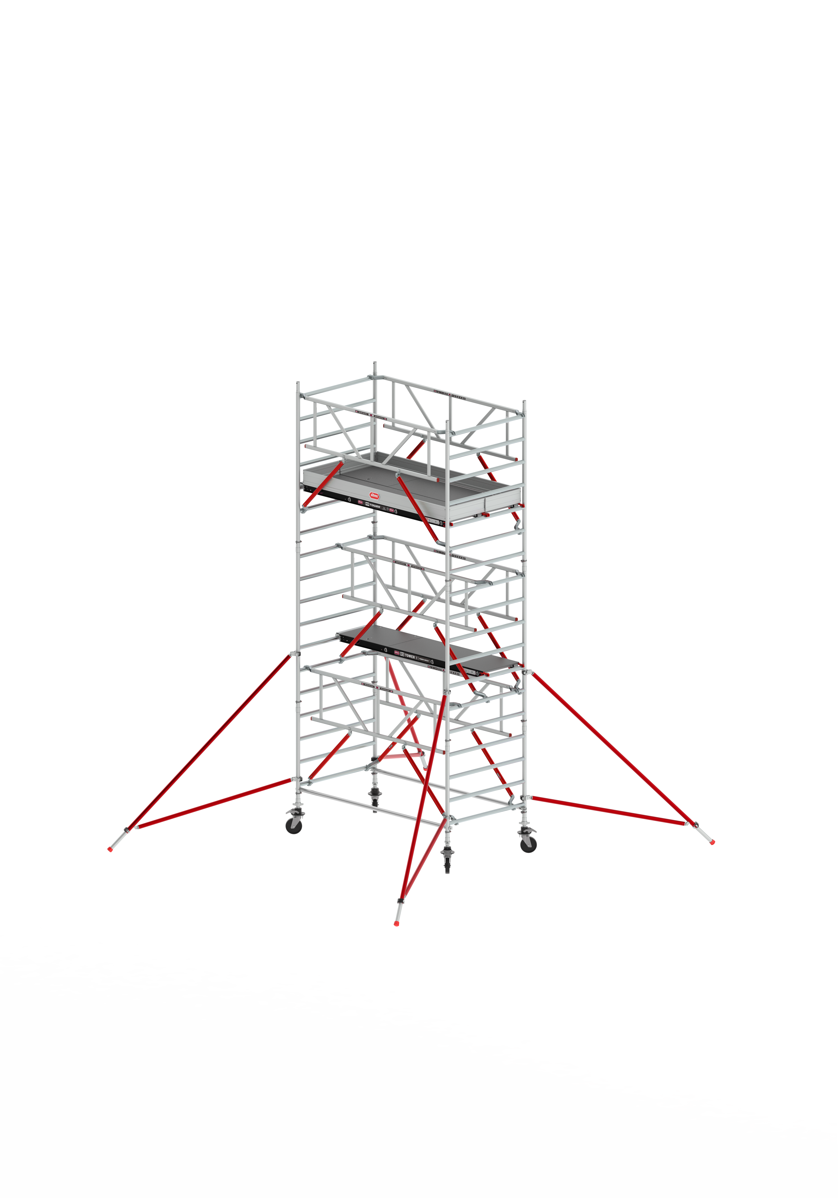 - 4x Bastidor RS TOWER 5 135-28-7 - 2x Bastidor RS TOWER 5 135-28-4 - 4x Brazo ajustable + Rueda RS TOWER 5 Ø 200 mm RS TOWER 5 - 2x Plataforma de madera 245 con trampilla - 1x Plataforma de madera 245 sin trampilla - 6x Barandilla Safe-Quick® 245 RS TOWER 5 - 2x Tirante Horizontal RS TOWER 5 245-6 - 4x Estabilizador Triangular Easy-Lock® 4.2m Rojo - 1x Rodapié Aluminio RS TOWER 5 135 x 245