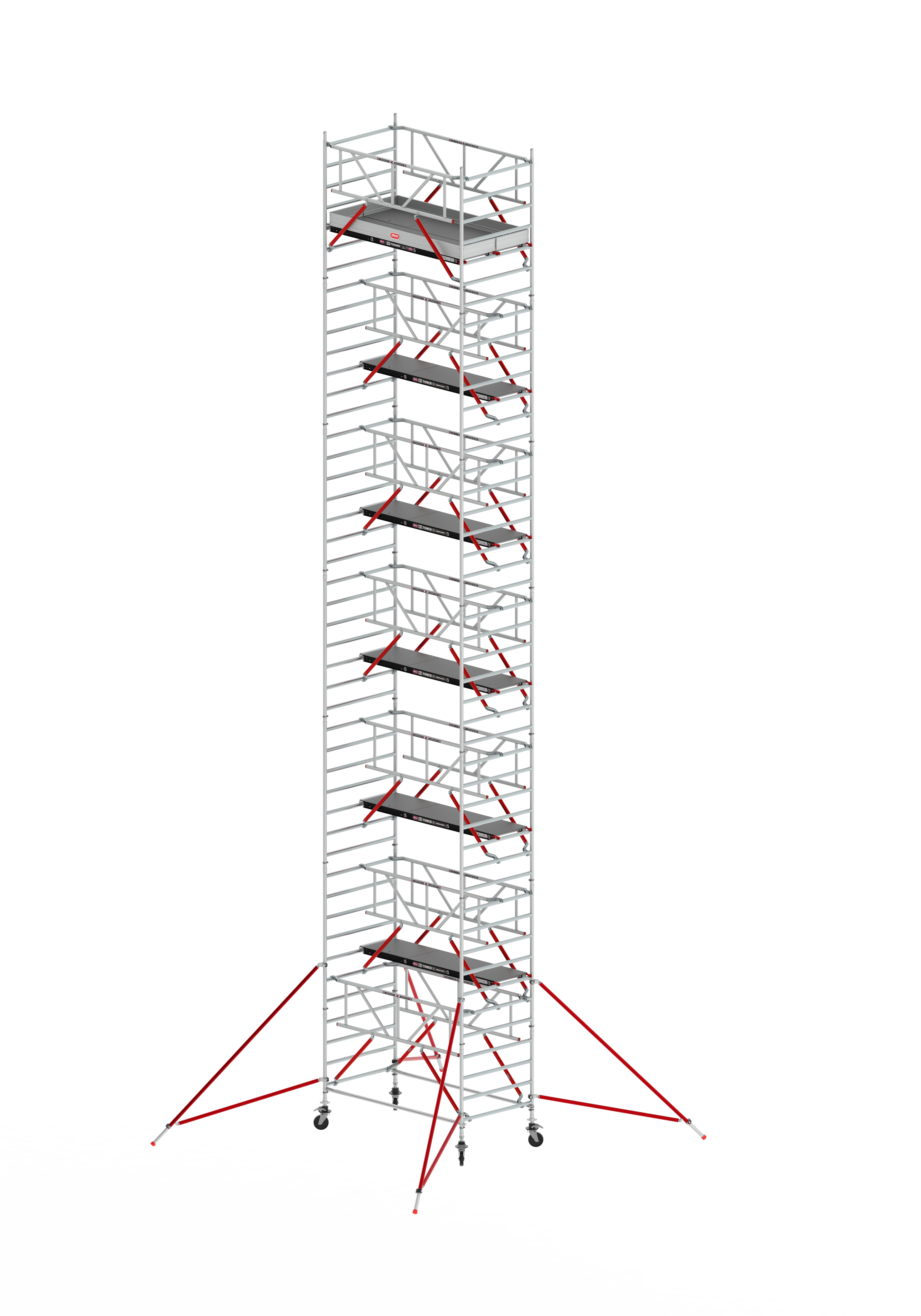 - 12x Bastidor RS TOWER 5 135-28-7 - 2x Bastidor RS TOWER 5 135-28-4 - 4x Brazo ajustable + Rueda RS TOWER 5 Ø 200 mm RS TOWER 5 - 6x Plataforma de madera 305 con trampilla - 1x Plataforma de madera 305 sin trampilla - 14x Barandilla Safe-Quick® 305 RS TOWER 5 - 2x Tirante Horizontal RS TOWER 5 305-8 - 4x Estabilizador Triangular Easy-Lock® universal Rojo - 1x Rodapié Aluminio RS TOWER 5 135 x 305
