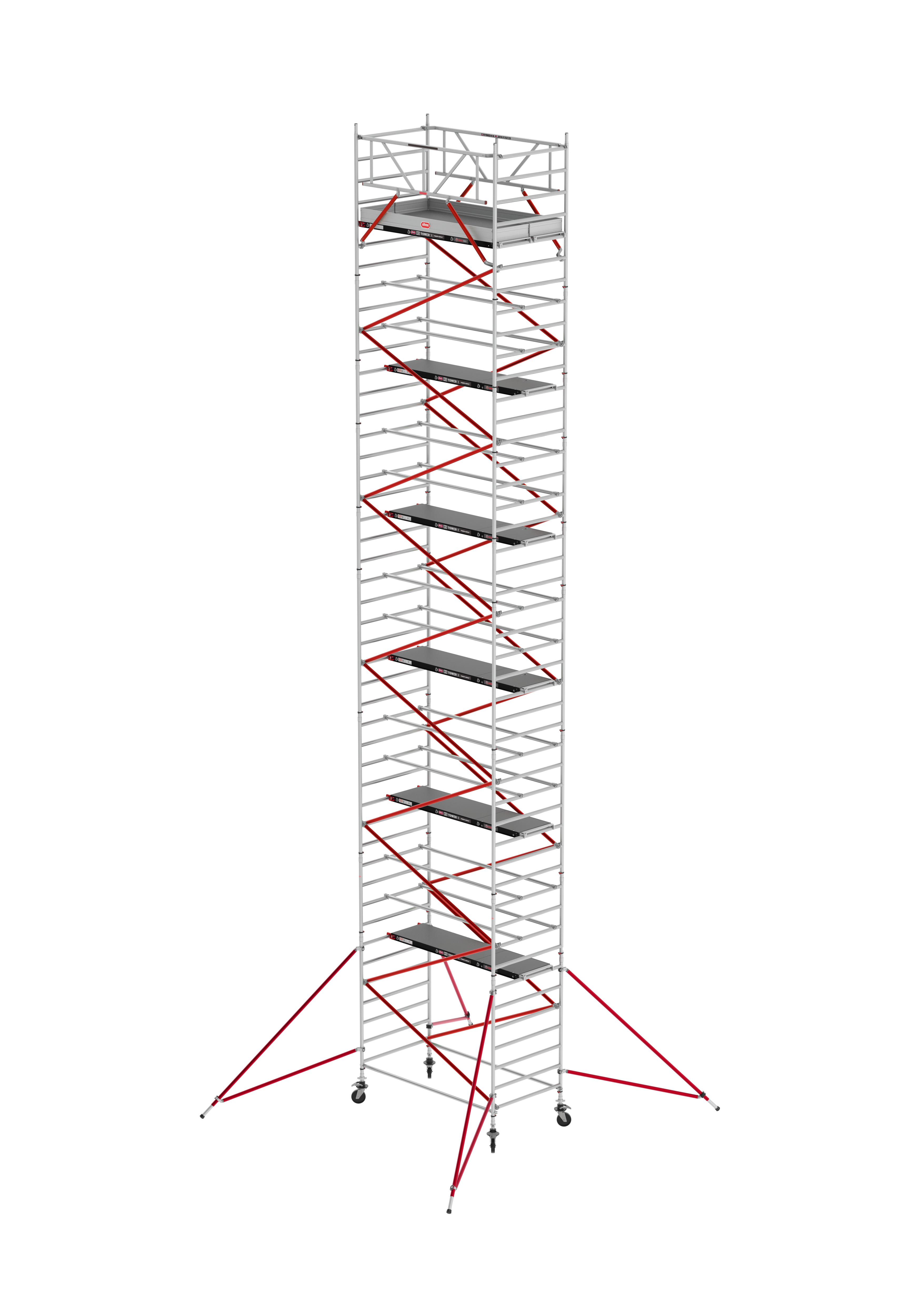 - 12x Bastidor RS TOWER 5 135-28-7 - 2x Bastidor RS TOWER 5 135-28-4 - 2x Barandilla Safe-Quick® 245 RS TOWER 5 - 4x Brazo ajustable + Rueda RS TOWER 5 Ø 200 mm RS TOWER 5 - 6x Plataforma de madera 245 con trampilla - 1x Plataforma de madera 245 sin trampilla - 20x Tirante Diagonal Rojo RS TOWER 5 245-28-6 - 22x Tirante Horizontal RS TOWER 5 245-6 - 4x Estabilizador Triangular Easy-Lock® universal Rojo - 1x Rodapié Aluminio RS TOWER 5 135 x 245