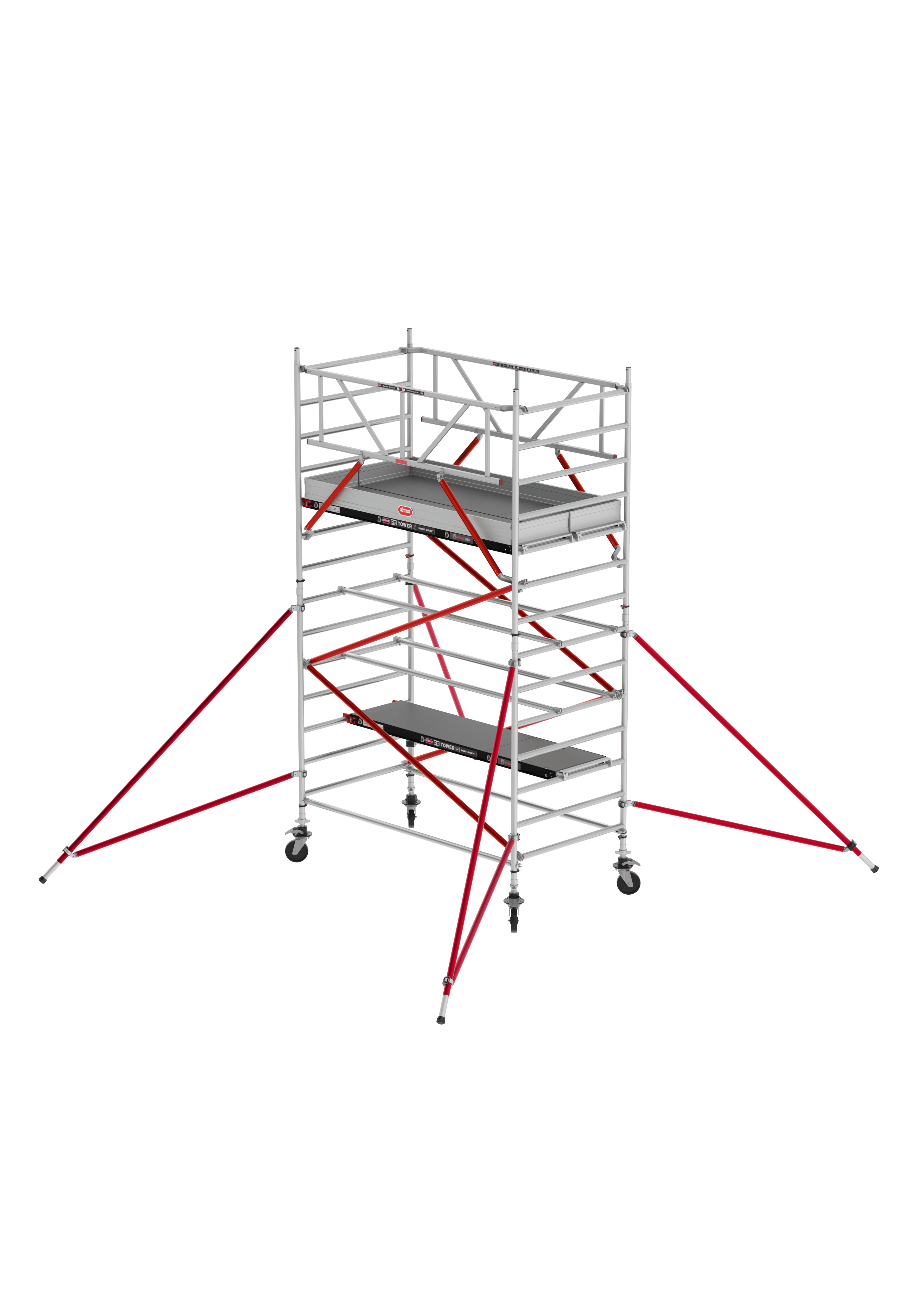 La torre de aluminio RS TOWER 5 lleva la experiencia del usuario a otro nivel. Disponible en anchos de 0,75 m y 1,35 m y plataformas desde 1,85 m hasta 3,05 m, permite alcanzar alturas de trabajo de hasta 14,20 m, con una resistencia de 200 kg/m² (clase 3).
