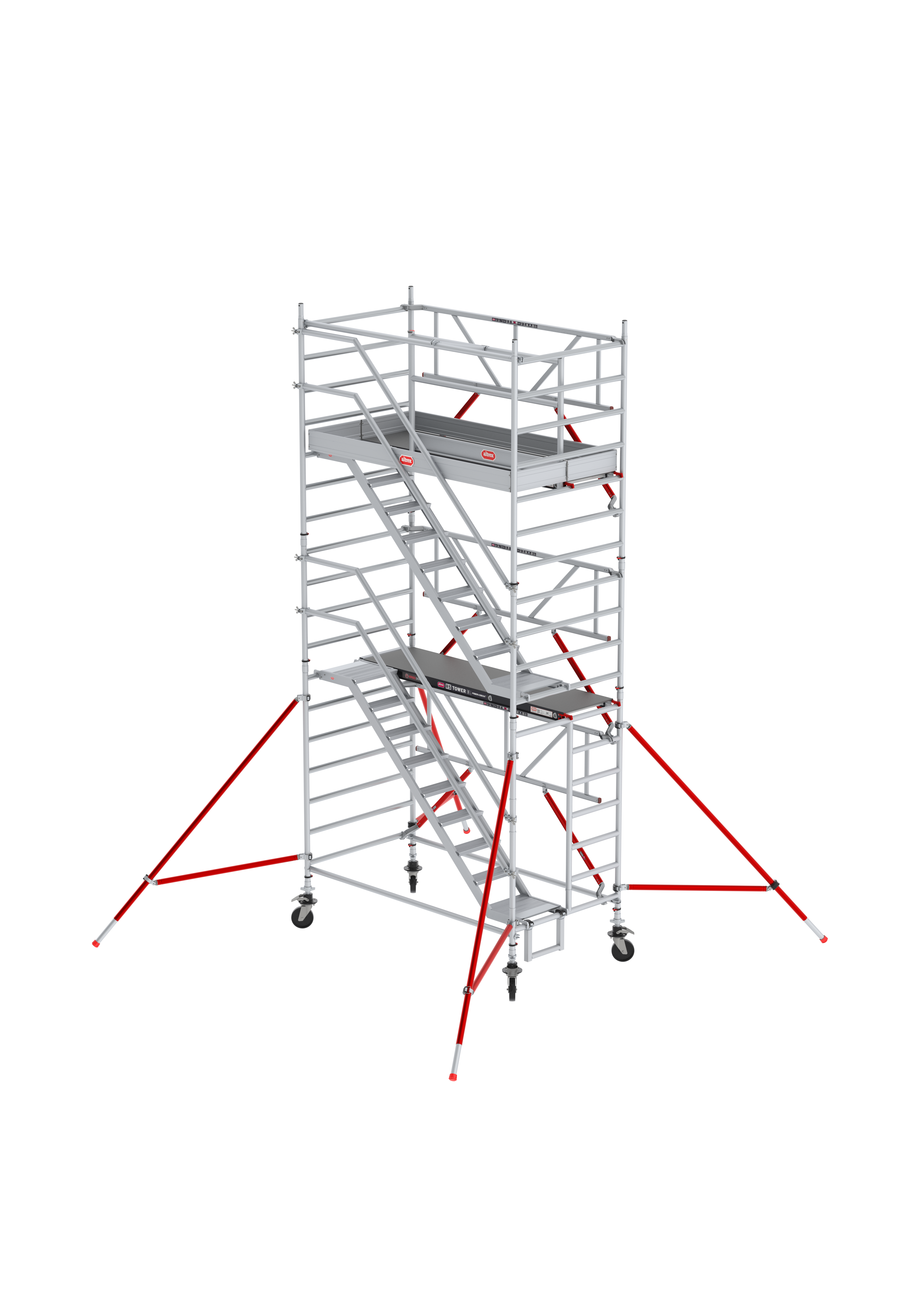 - 3x Bastidor RS TOWER 5 135-28-7 - 2x Bastidor RS TOWER 5 135-28-4 - 1x Bastidor de paso RS TOWER 5 5200-28* - 4x Brazo ajustable + Rueda RS TOWER 5 Ø 200 mm RS TOWER 5 - 2x Plataforma de madera 185 con trampilla - 3x Barandilla Safe-Quick® 185 RS TOWER 5 - 3x Tirante Horizontal 185-4 RS TOWER 5 - 4x Estabilizador Triangular Easy-Lock® 4.2m Rojo - 1x Rodapié Aluminio RS TOWER 5 135 x 185 - 2x Escalera interior de Zanca 185 (7 peldaños)* - 4x Tirante Barandilla 185* - 1x Barandilla Plataforma Superior 185* - 1x Primer Peldaño