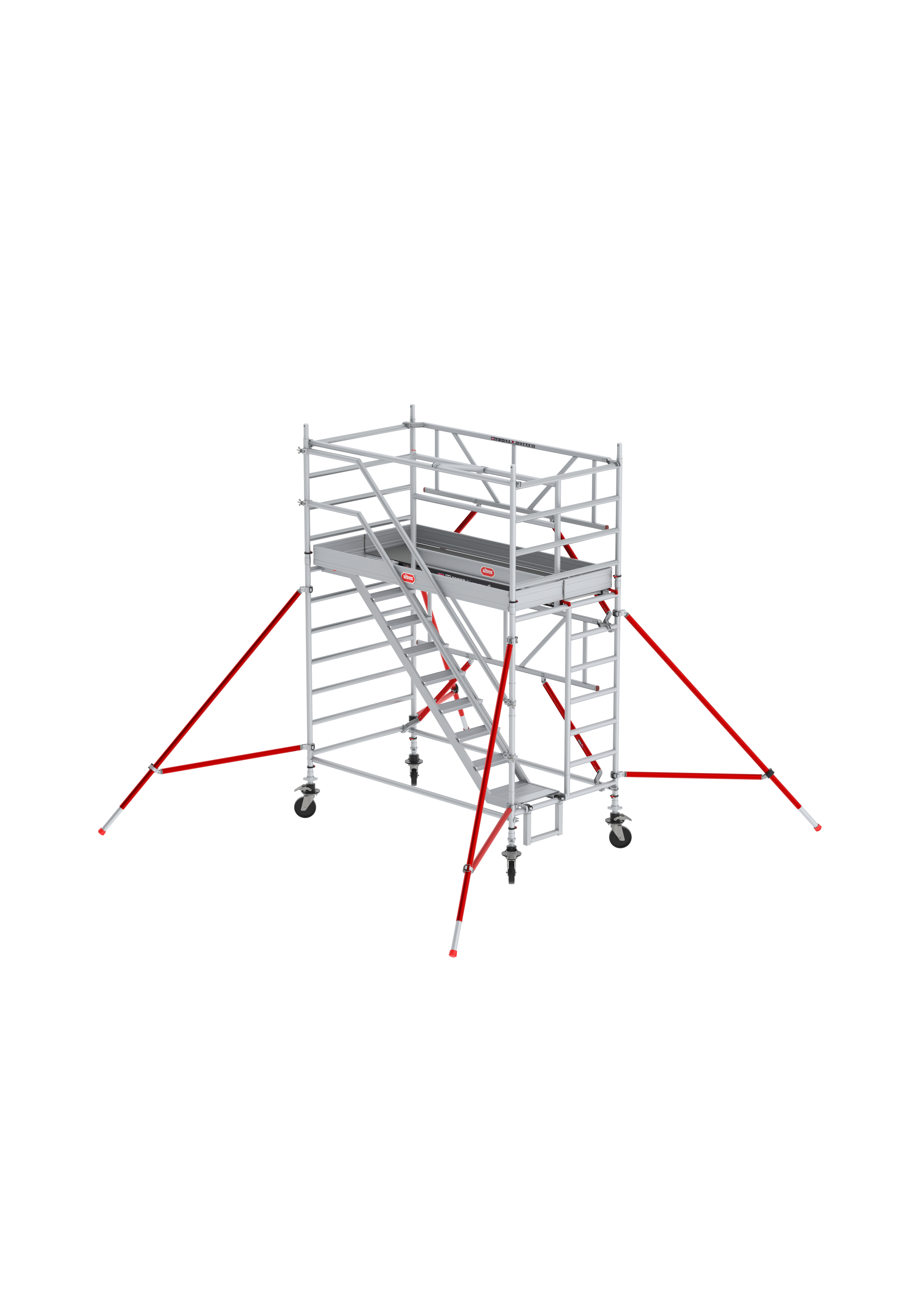 - 1x Bastidor RS TOWER 5 135-28-7 - 2x Bastidor RS TOWER 5 135-28-4 - 1x Bastidor de paso RS TOWER 5 5200-28* - 4x Brazo ajustable + Rueda RS TOWER 5 Ø 200 mm RS TOWER 5 - 1x Plataforma de madera 245 con trampilla - 2x Barandilla Safe-Quick® 245 RS TOWER 5 - 3x Tirante Horizontal RS TOWER 5 245-6 - 4x Estabilizador Triangular Easy-Lock® 4.2m Rojo - 1x Rodapié Aluminio RS TOWER 5 135 x 245 - 1x Escalera interior de Zanca 245 (7 peldaños)* - 2x Tirante Barandilla 245* - 1x Barandilla Plataforma Superior 245* - 1x Primer Peldaño